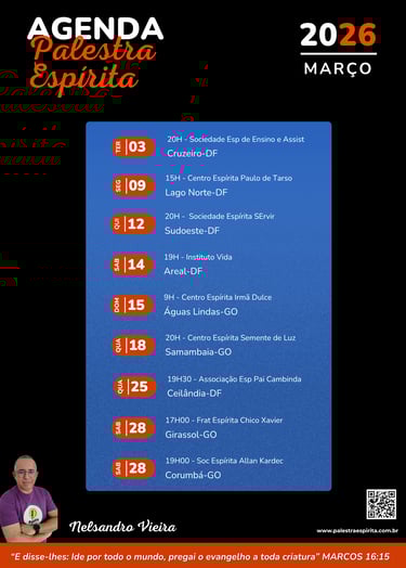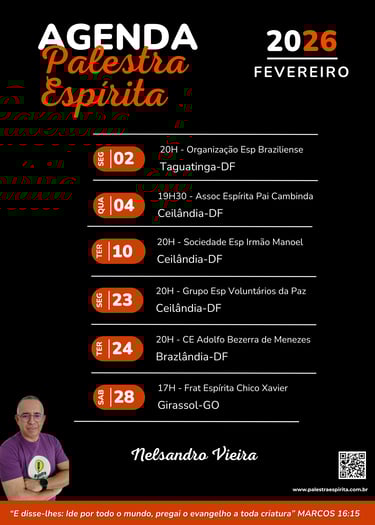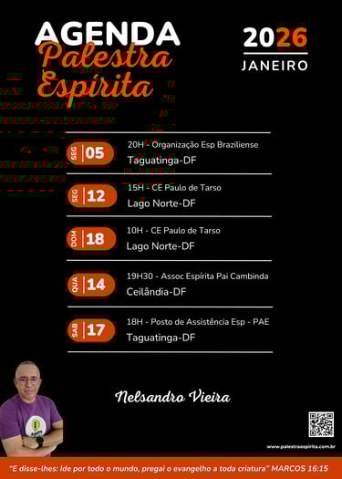 Sou Nelsandro Vieira, palestrante espírita há mais de trinta anos e venho dedicando minha trajetória ao estudo do Espiritismo e à orientação espiritual de pessoas que buscam sentido, equilíbrio e transformação interior à luz da Doutrina Espírita e dos ensinamentos de Jesus
